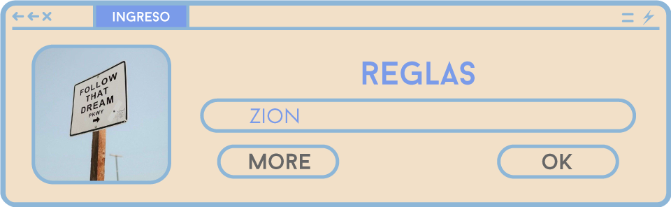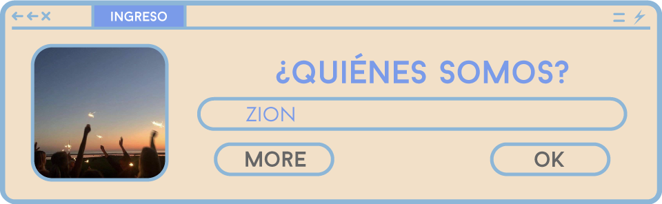 ZION es una comunidad cuyo nombre en hebreo tiene el significado bíblico de tierra prometida. La idea de sus creadores, es tener un espacio donde la amistad, el respeto, la cordialidad y la responsabilidad sean los pilares fundamentales. Nuestro principal propósito es lograr que se convierta en tu hogar, donde puedas expandir tu creatividad, entretenerte y socializar.Podrás participar de los juegos y realizar actividades, las cuales son muy variadas debido a que no tenemos una temática establecida.
